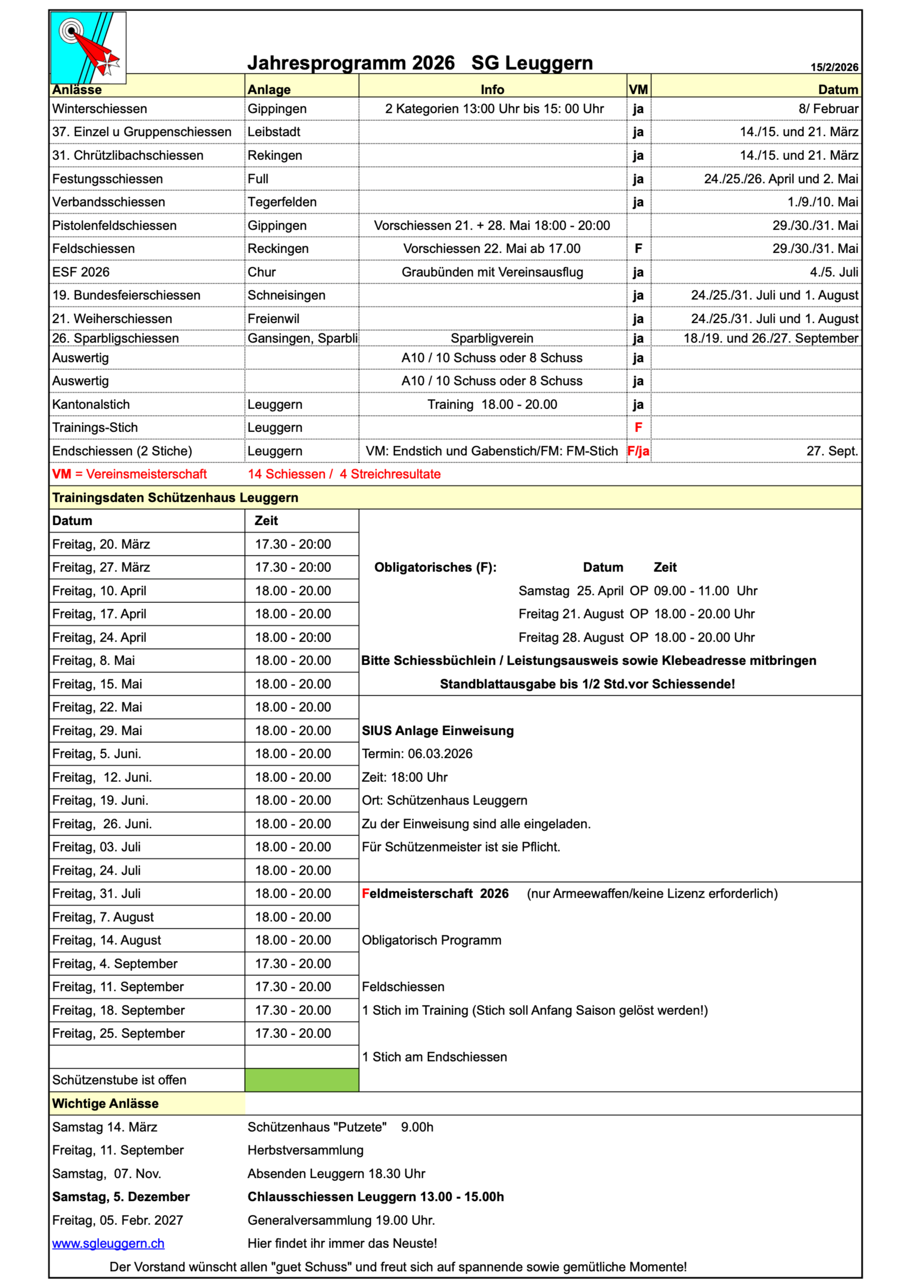 Jahresprogramm 2026